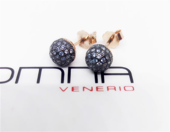 VENERIO ARGENTO Orecchino a lobo paletto con boule in pavé di zirconi. Argento 925 in bagno oro rosa 24 kt. Gioiello anallergico, nichel free. Sullo shop disponibile girocollo coordinato.