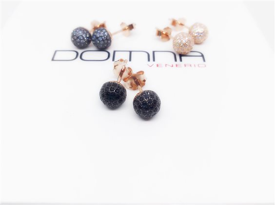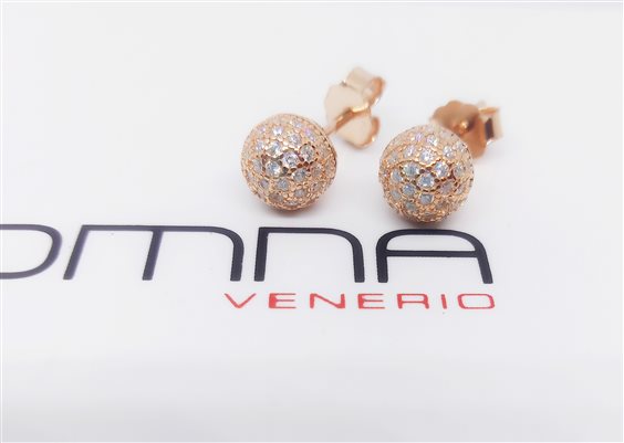 VENERIO ARGENTO Orecchino a lobo paletto con boule in pavé di zirconi. Argento 925 in bagno oro rosa 24 kt. Gioiello anallergico, nichel free. Sullo shop disponibile girocollo coordinato.