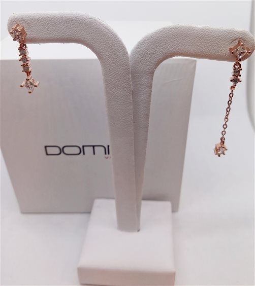 VENERIO ARGNTO Orecchini pendenti asimmetrici in argento 925 in bagno oro rosa 24 kt con pietre. Chiusura con farfallina. Gioiello anallergico, nichel free.
