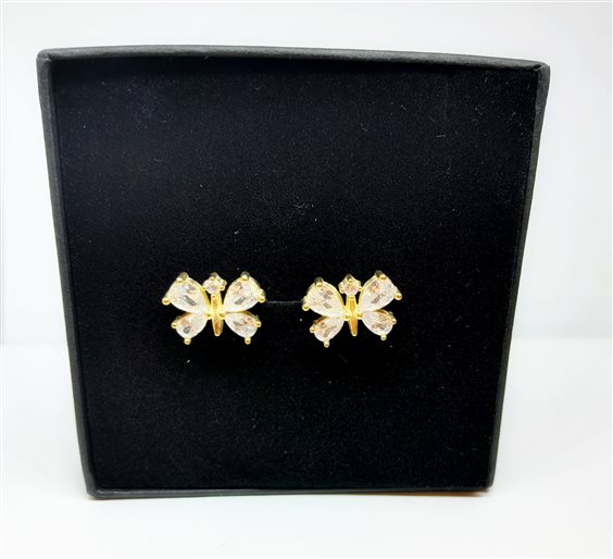 Orecchino a lobo farfalla in argento 925 con pietre rosse cm 1.4x1