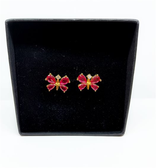 Orecchino a lobo farfalla in argento 925 con pietre rosse cm 1.4x1