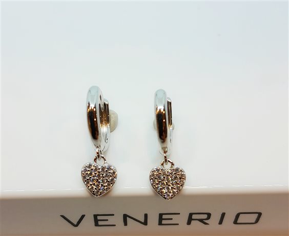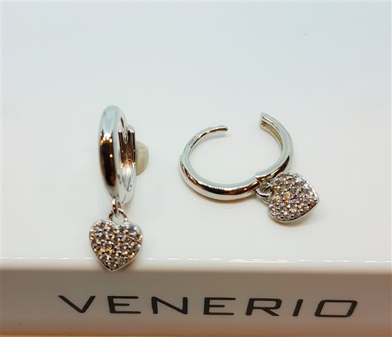 Orecchino cerchio chiusura scattino, argento 925 rodiato con pendente cuoricino in zirconi.