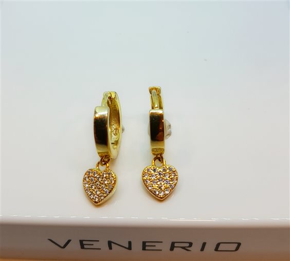 Orecchino cerchio chiusura scattino, argento 925 in bagno oro giallo con pendente cuoricino con zirconi