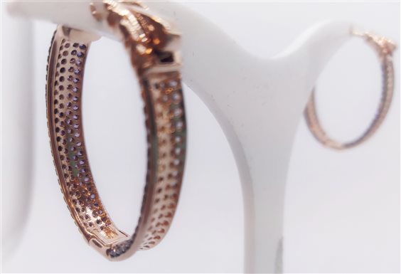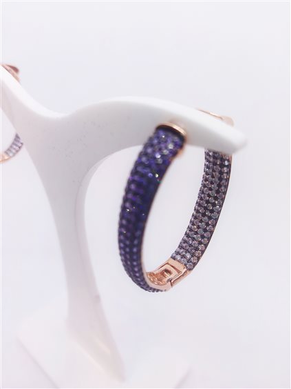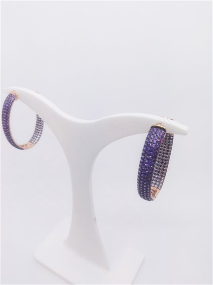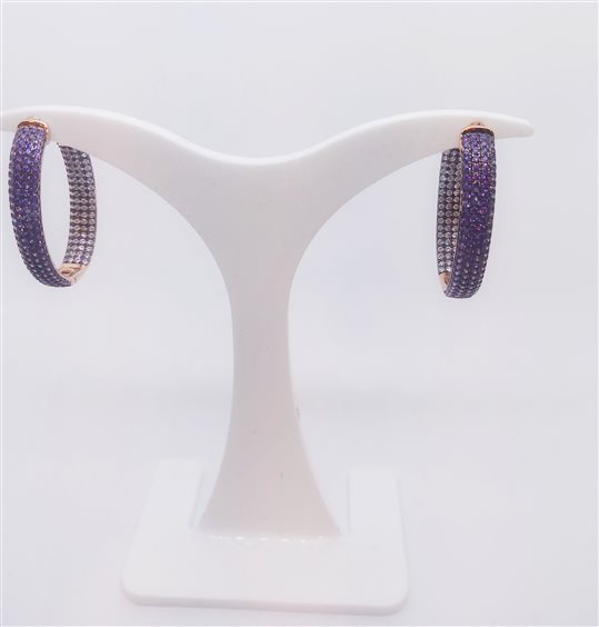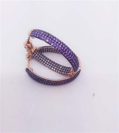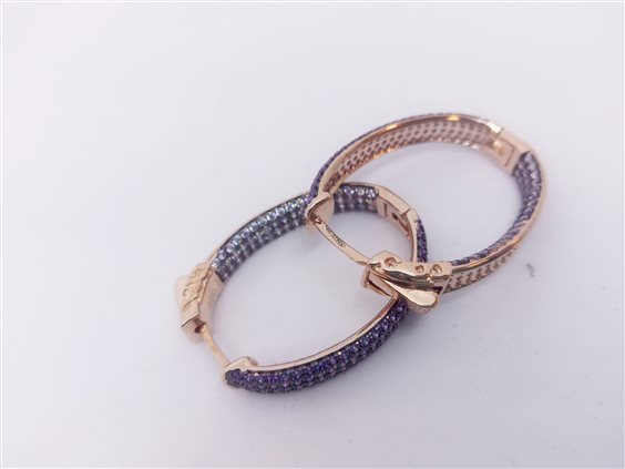 VENERIO ARGENTO Orecchini pendenti a cerchio ovale in argento 925 placcato oro rosa 24kt. Modello raffinatissimo con pavé di cristalli viola nella parte anteriore e pavé di cristalli lilla pallido nella parte interna. Le due parti dell'ovale sono raccordate tramite una cerniera. Chiusura a scattino con molletta di sicurezza. Gioiello anallergico, nichel free.
