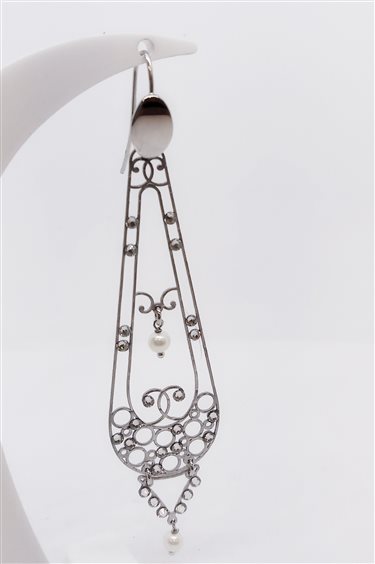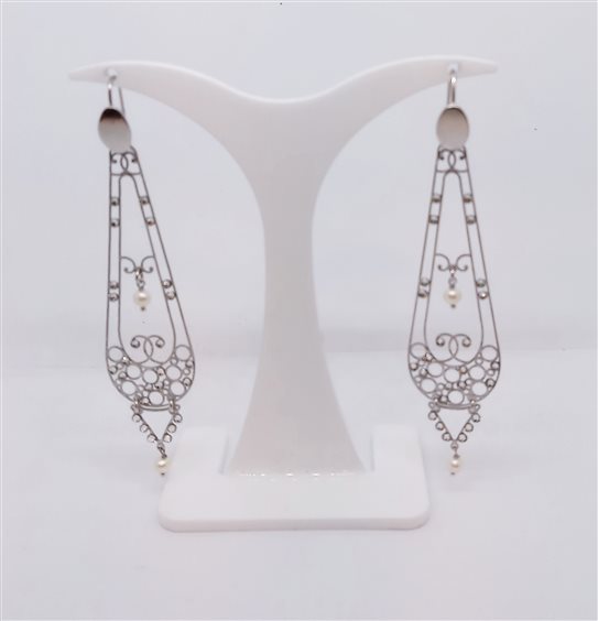 Orecchini pendenti ad amo in argento 925 Ultra sottili e leggeri con inserti in perle e strass bianchi