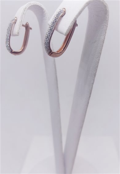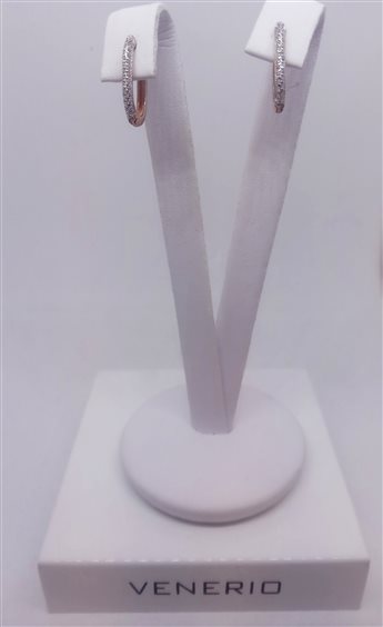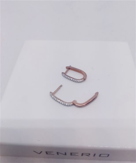 VENERIO ARGENTO Orecchini ovali a scattino in argento 925 in bagno oro rosa 18 kt con pavé di zirconi sul lato anteriore. Anallergico, nichel free.